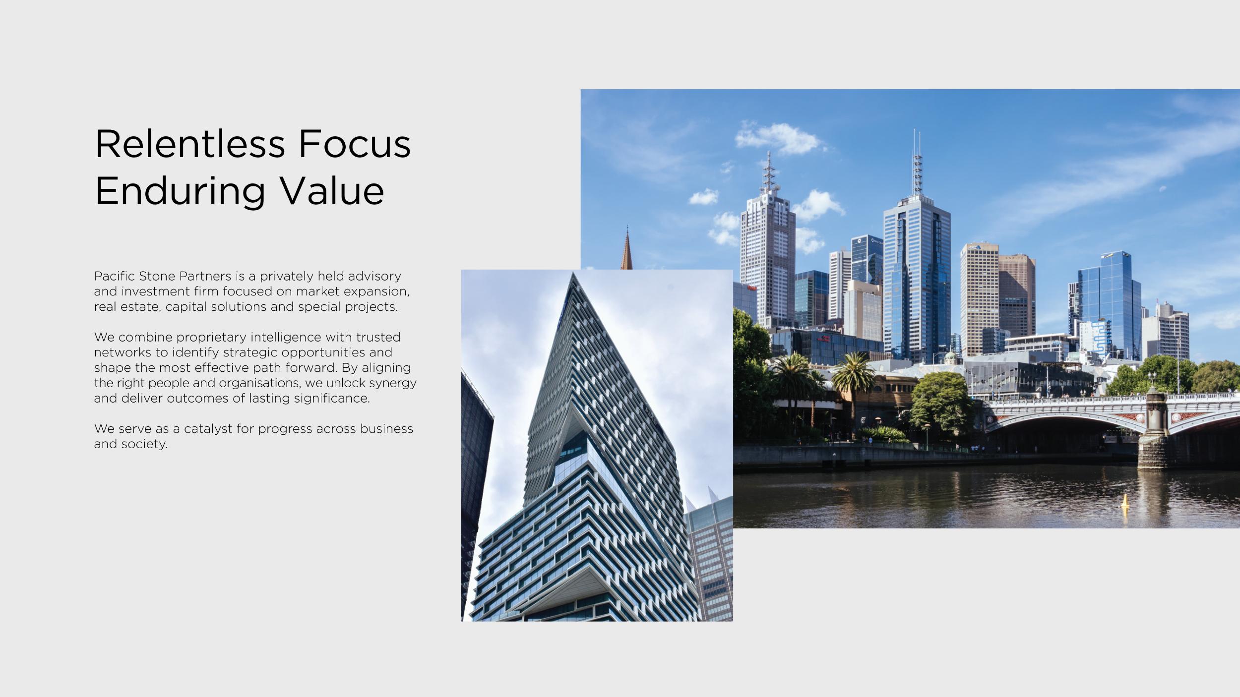Pacific Stone Partners operates in the fields of investment and financial advisory, real estate, market expansion, and special projects.